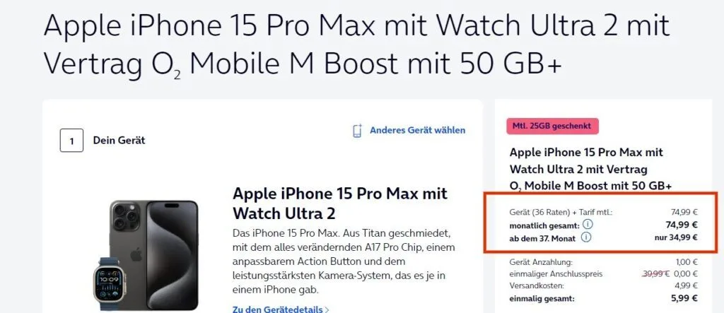 O2 Pay Stopp im Shop: ab dem 37. Monat wird der Preis deutlich billiger