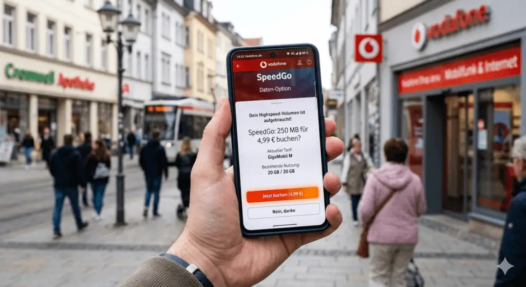 In den aktuellen Tarifen von Vodafone bleibt SpeedGo ein fester, wenn auch oft umstrittener Bestandteil der Vertragskonditionen. Sobald das im Tarif enthaltene Highspeed-Datenvolumen zu 100 % aufgebraucht ist, greift die Datenautomatik ein, um eine Drosselung der Surfgeschwindigkeit zu verhindern. Dabei werden automatisch zusätzliche Datenpakete nachgebucht, deren Größe und Preis vom jeweiligen Grundtarif abhängen.